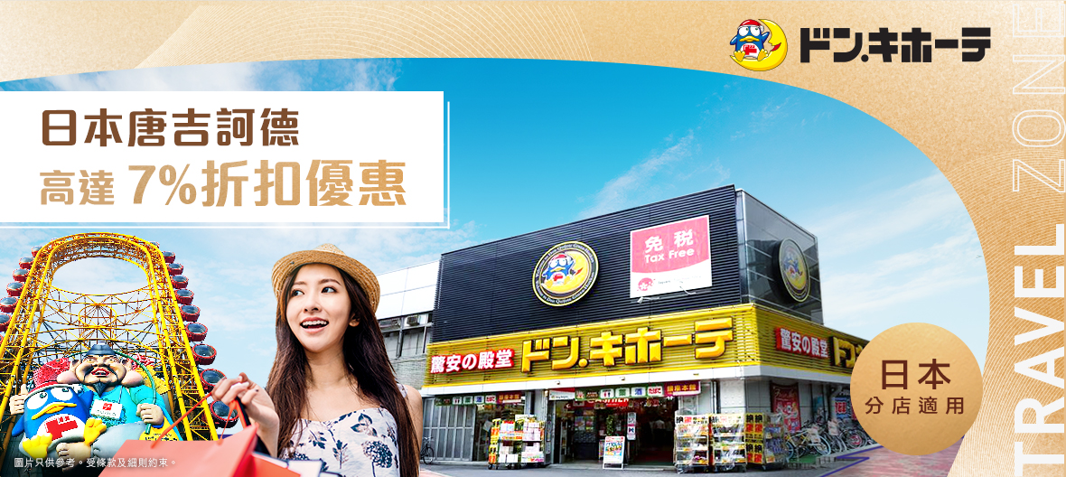於日本唐吉訶德 (Donki) 享高達7%折扣優惠。包括: